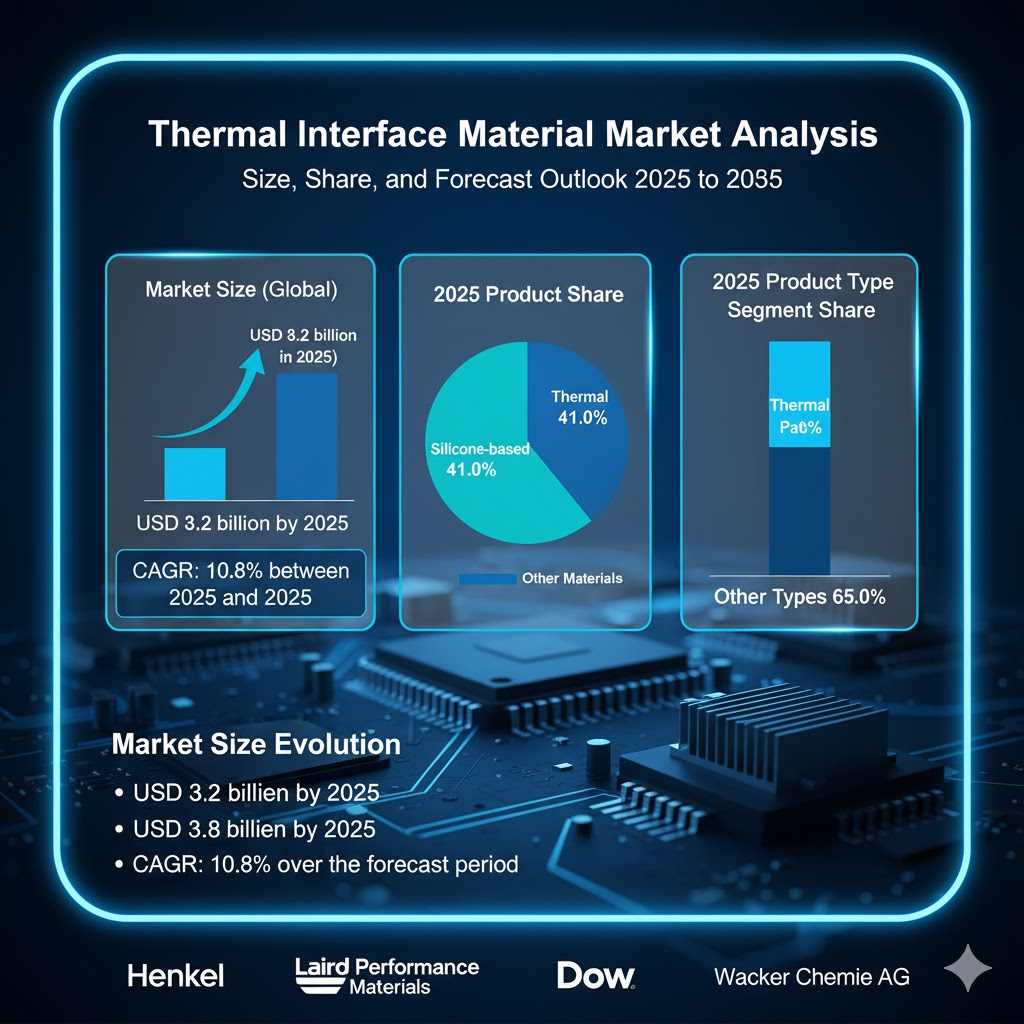 NEWARK, DE, UNITED STATES, November 6, 2025 /EINPresswire.com/ -- The thermal interface material market begins at USD 3.2 billion in 2025 and surges to USD 8.9 billion by 2035. It advances at a 10.8% CAGR. Electronics miniaturization demands superior heat dissipation in compact designs.